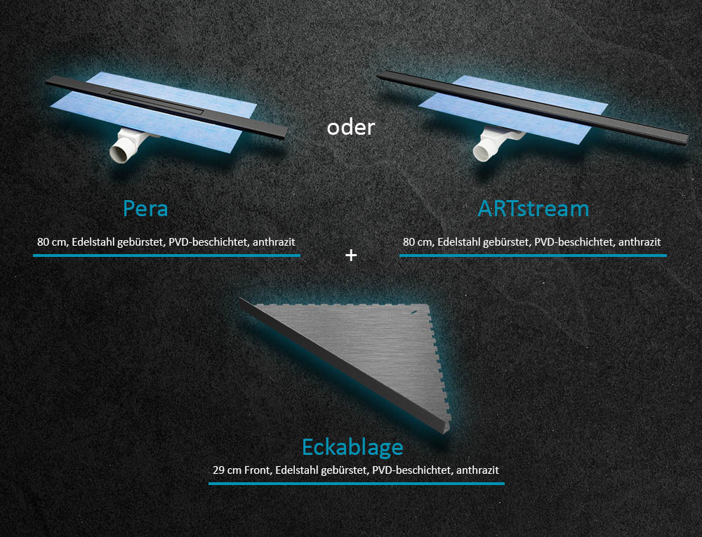 Duschrinnen, Profile und Badaccessoires in einer atemberaubenden Farbe, aus Edelstahl mit hochwertiger, ultra-beständiger PVD-Beschichtung - das ist Black inspiration von GRUEN.