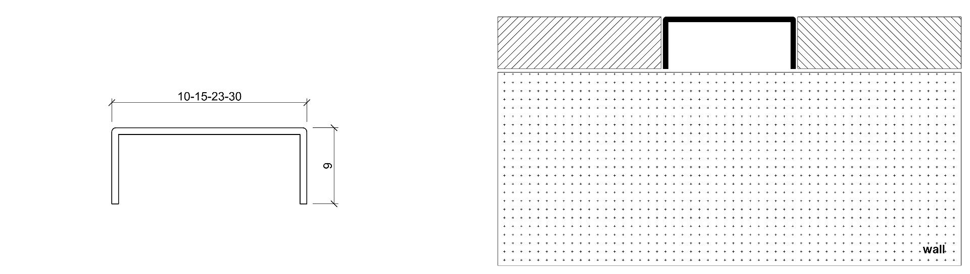 PD98 ist ein Dekor-Profil mit zur Fliese bündiger Edelstahlfläche. Es ermöglicht es, in ausgewählten Bereichen optische Akzente zu setzen. Wir fertigen PD92 in den Breiten 10 mm, 15 mm, 23 mm und 30 mm und in Edelstahl gebürstet, glänzend und hochglanzpoliert. Auf Wunsch sind die gebürstete und die glänzende Variante auch in den Farben Gold, Bronze und Anthrazit erhältlich.