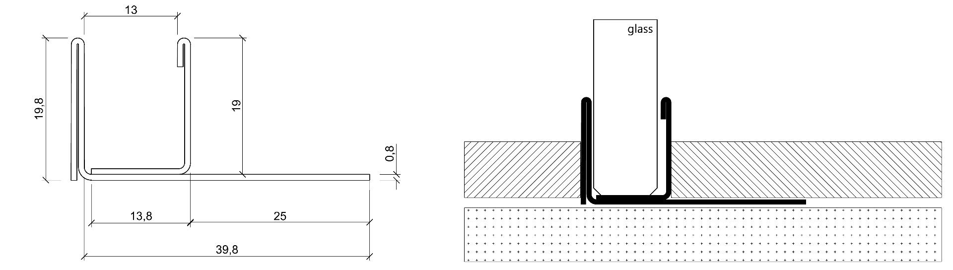 Das Edelstahl U-Profil PG71 dient zur Aufnahme von Glastrennwänden aus Sicherheitsglas. Es wird unter der begrenzenden Fliese im Kleber installiert und kann auf dem Boden und an der Wand genutzt werden. PG71 von GRUEN ermöglicht somit eine einfache und formschöne Aufnahme der Glastrennwände ganz ohne Bohren.