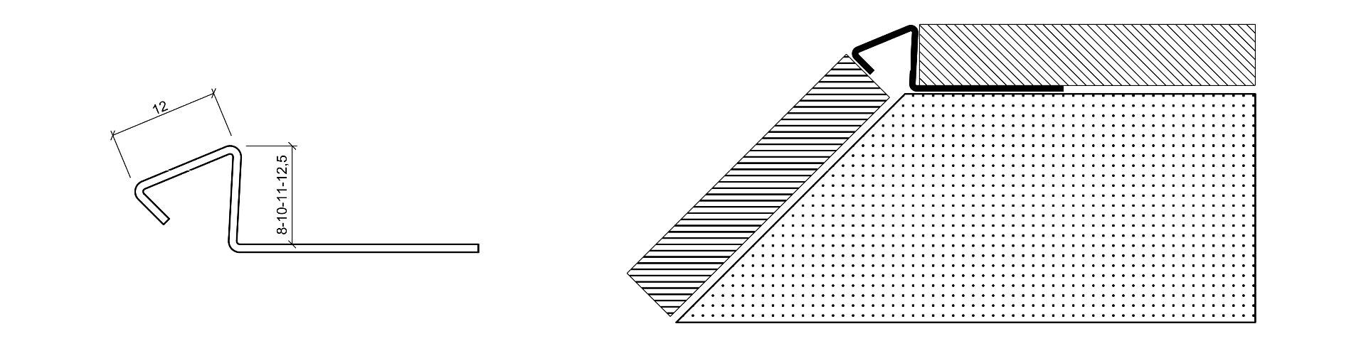 An Wandecken mit Winkeln über 90° vergrößert sich die Fliesenfuge. PE45 wurde speziell für diese Situation entwickelt. Das Profil schließt den vergrößerten Fugenspalt an abgewinkelten Wandkanten sauber ab, schafft einen sicheren und homogenen Anschluss und erzeugt ein ganzheitliches Erscheinungsbild der Fläche. Die Verlegung ist durch den einflügeligen Aufbau des Profils sehr einfach. PE45 fertigen wir in Edelstahl gebürstet und glänzend. In beiden Ausführungen sind auf Kundenwunsch auch die Farbvarianten Gold, Bronze und anthrazit erhältlich. PE45 gibt es für die Fliesendicken 8 mm, 10 mm, 11 mm und 12,5 mm.