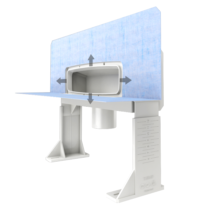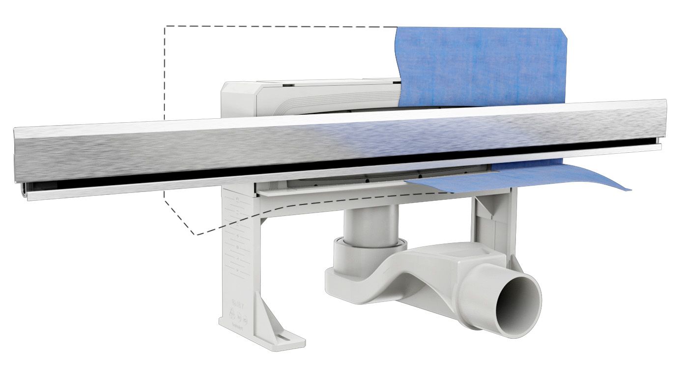 Der patentierte Nivellierkeil garantiert den bündigen Anschluss der Wand- und Bodenflächen an den Rinnenkörper.