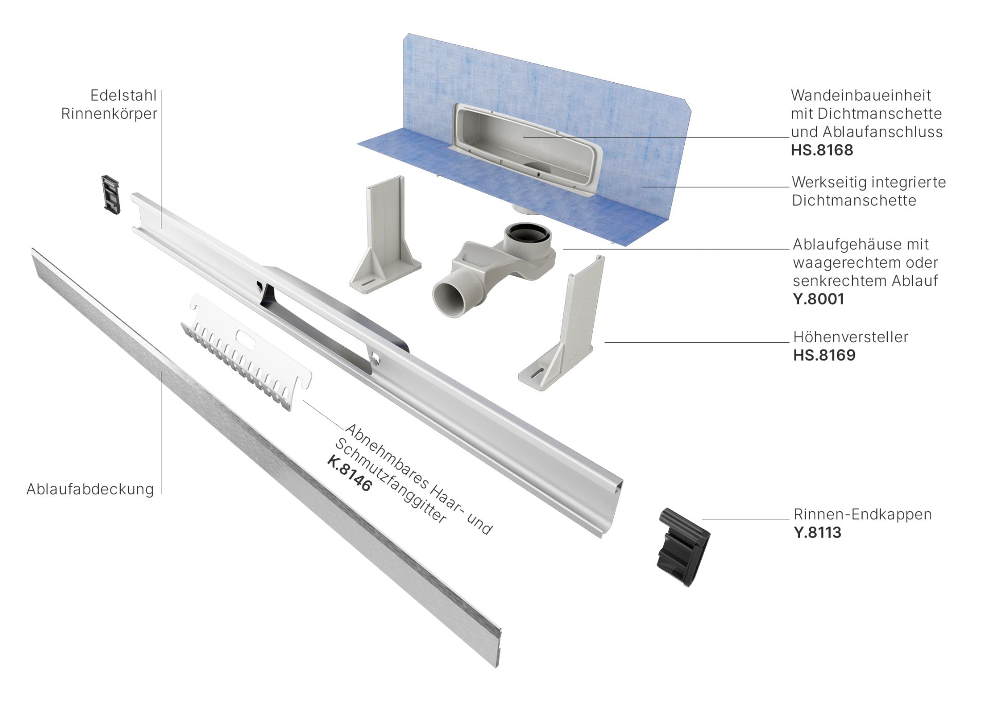 Wall-In ist der weltweit erste schneidbare Wandablauf und mit seinen patentierten technischen Eigenschaften einzigartig. Mit Wall-In wird die Installation eines Wandablaufs einfach. Der filigrane Rinnenkörper bildet eine Ebene mit der Wandfliese, die mit der gradlinigen Edelstahlabdeckung einen brillanten Abschluss erhält. GRUEN bietet mit Wall in einen designstarken, echten Wandablauf.Die Duschfläche kann in einer Ebene gestaltet werden und bietet mit der dekorativen Wall-In klares, elegantes Design. Wegen des geringen Platzbedarfs ist die Lösung auch in der Renovierung attraktiv. Wall-In ist in den Längen 120 cm, 100 cm, 80 cm und 30 cm verfügbar und kann direkt installiert oder zugeschnitten werden.Durch die intelligente Konzeption kann Wall-In schnell und einfach an die Fliesenstärke angepasst werden. Die werkseitig integrierte Dichtmanschette garantiert den schnellen Einbau und bietet absolute Dichtigkeit. Durch die leicht abnehmbare Abdeckung und den speziell entwickelten Haar- und Schmutzfänger ist Wall-In leicht zu reinigen und zu pflegen. Wall-In ist mit einem waagrechten (im Set) oder senkrechten Ablauf zu verwenden. Die Höhenverstellung des Ablaufkörpers ermöglicht die leichte Anpassung an die benötigte Anwendungshöhe.