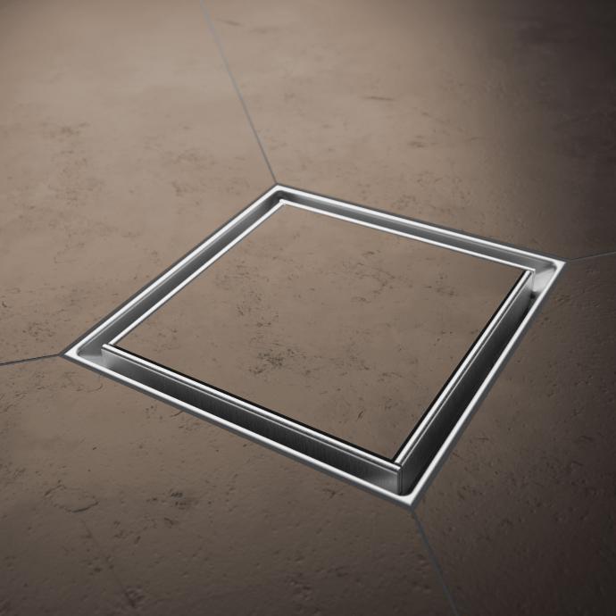 Passen Sie mit Hilfe des höhenverstellbaren Verschraubungsrings die Höhe des Bodenablaufs an den Fliesenbelag an.